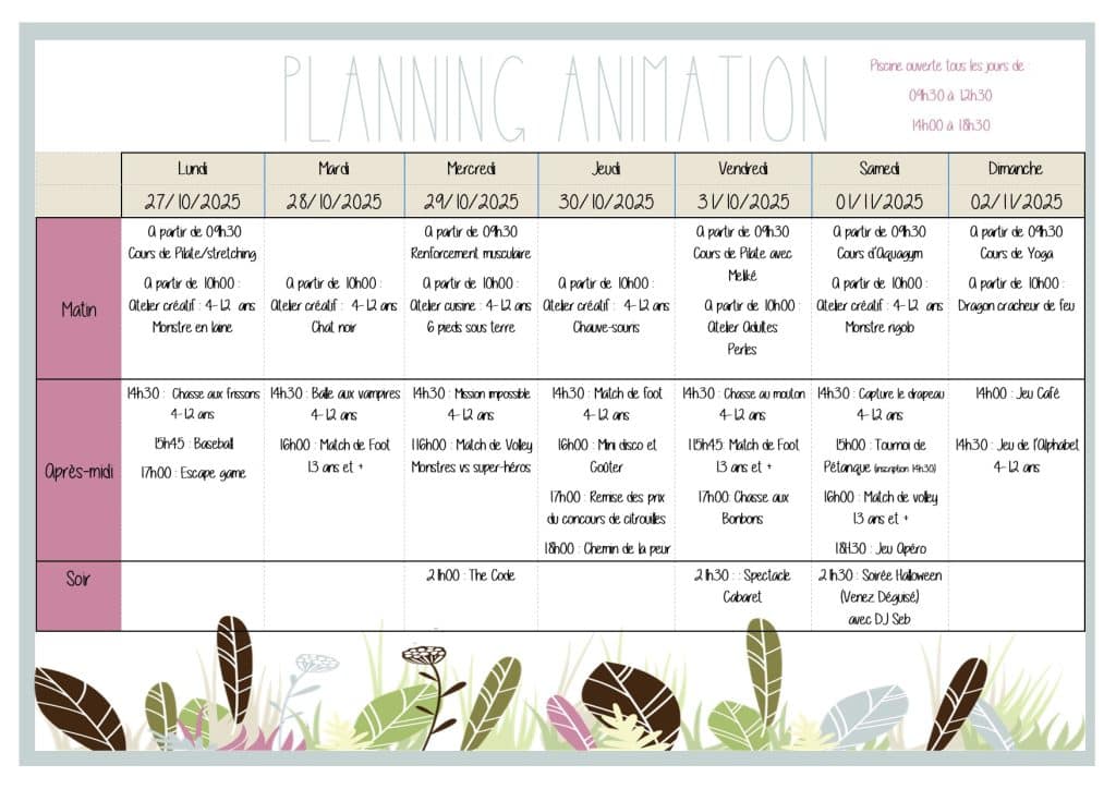 Ci-dessous un planning type d’une semaine d’animations au mois de juillet et d’août.
